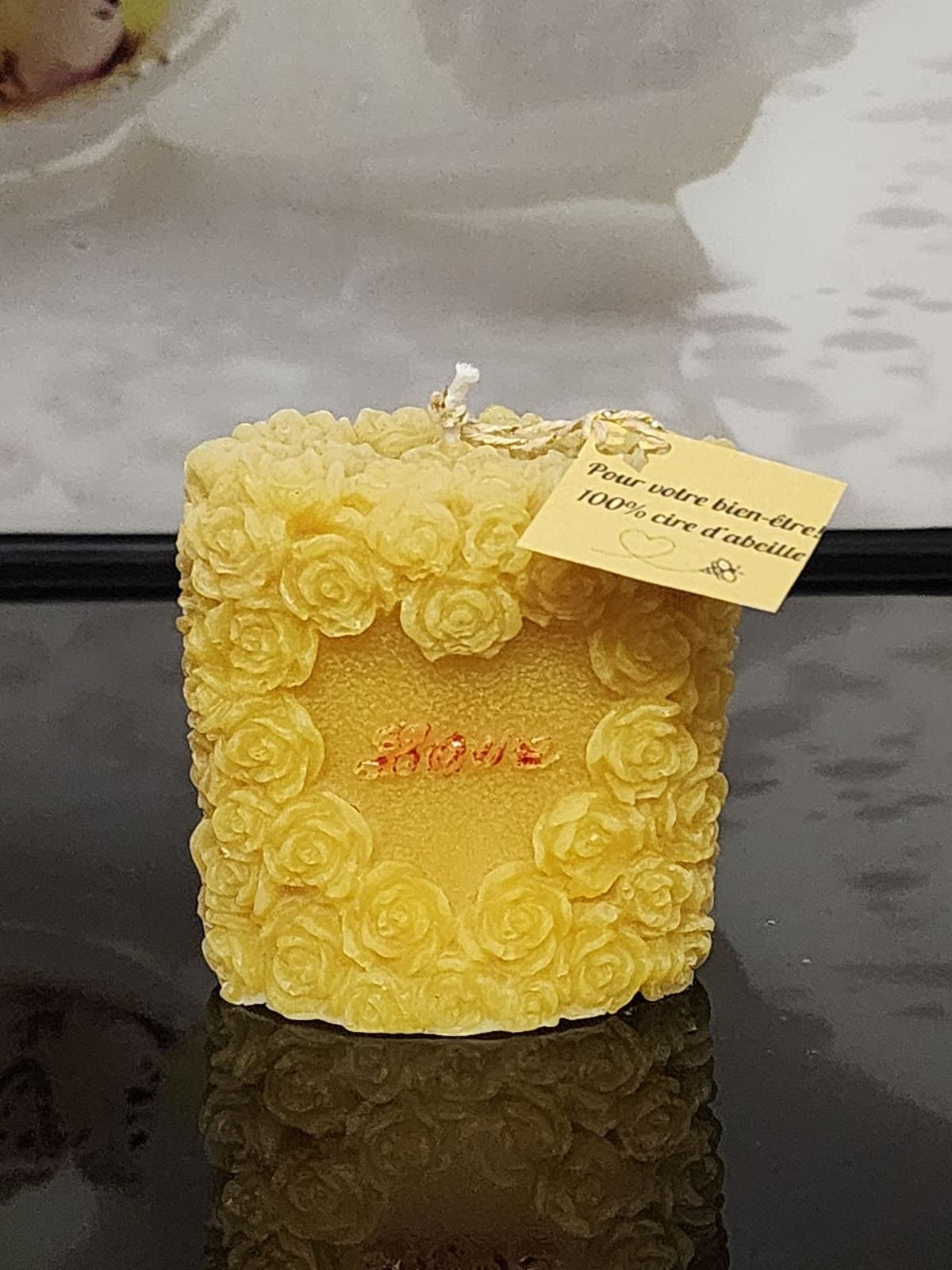 Grâce à la cire d’abeille naturelle, cette bougie purifie légèrement l’air et diffuse une lumière douce et réconfortante. Chaque pièce est unique, respectueuse de l’environnement et parfaite pour les moments de détente, de méditation ou simplement pour embellir votre espace de vie.